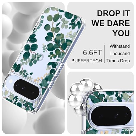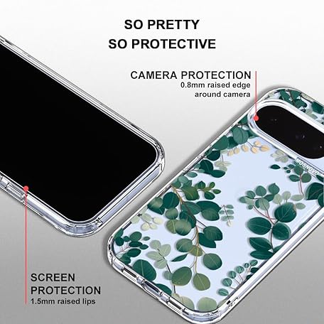 MOSNOVO Case for Google Pixel 10 & Pixel 10 Pro, [Buffertech 6.6ft Military-Grade Drop Protection] [Anti Peel Off Tech] Clear TPU Bumper Phone Case Cover Design - Eucalyptus