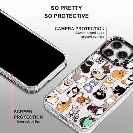 MOSNOVO Case for iPhone 16 Pro Max, [Buffertech 6.6ft Military-Grade Drop Protection] [Anti Peel Off Tech] Clear TPU Bumper Phone Case Cover Design - Cute Cats