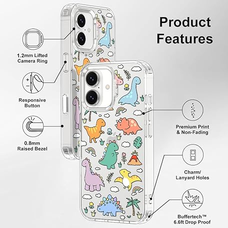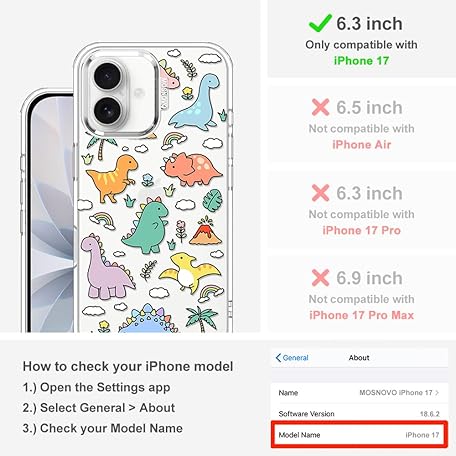 • MOSNOVO for iPhone 17 Case | Military Grade 6.6ft Drop Tested | Camera Control | Clear with Dinosaur Land Design