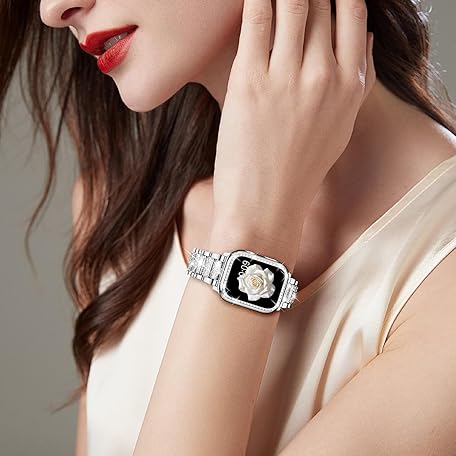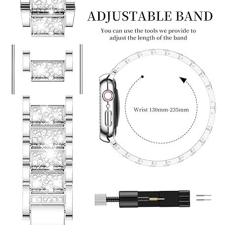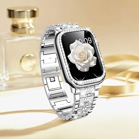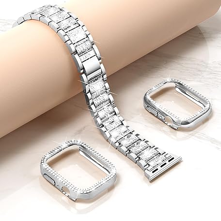 Mosonio Compatible with Apple Watch Band 38mm 40mm 41mm 42mm 44mm 45mm 46mm 49mm with 2 Pack Case Women, Jewelry Replacement Metal Bands Strap with Bling PC Protective Case for iWatch Ultra SE Series 11/10/9/8/7/6/5/4/3/2/1