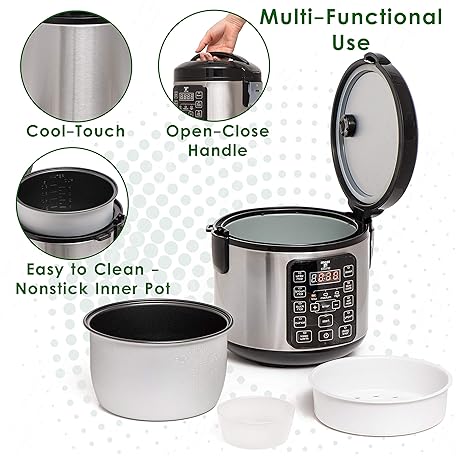 Thông tin sản phẩm Moss & Stone - Small Digital Electric Rice Cooker, 4-8 Cups, 10 Preset Settings, Brown and White Rice Steamer, Slow Cooker with Steamer for Vegetables, Pot
