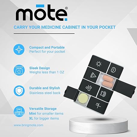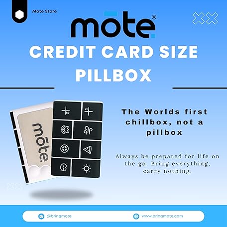 Thương hiệu Mote là cái tên nổi tiếng được rất nhiều khách hàng trên thế giới chọn lựa. Với kiểu dáng đẹp mắt, sang trọng, sản phẩm Mote Wallet Credit Card Size Pillbox Carry Medications, Pills 7 Day Weekly Organizer Pill case, Mini, Small Holder, Tiny, Travel, mote, Medicine (Mini Raven) là sự lựa chọn hoàn hảo nếu bạn đang tìm mua một món cho riêng mình.