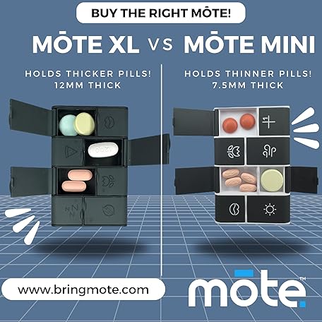 Thông tin sản phẩm Mote Wallet Credit Card Size Pillbox Carry Medications, Pills 7 Day Weekly Organizer Pill case, Mini, Small Holder, Tiny, Travel, mote, Medicine (Mini Raven)