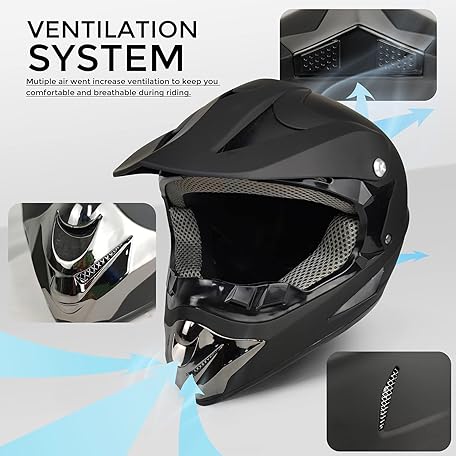 Thông tin sản phẩm Motocross Helmet,Youth & Adult ATV Dirt Bike Motorcycle Helmet, Kids BMX 4-Wheeler Off-Road Mountain Bike,DOT Certified,W/Gloves Goggles Mask 4-Piece Set (Black, L)