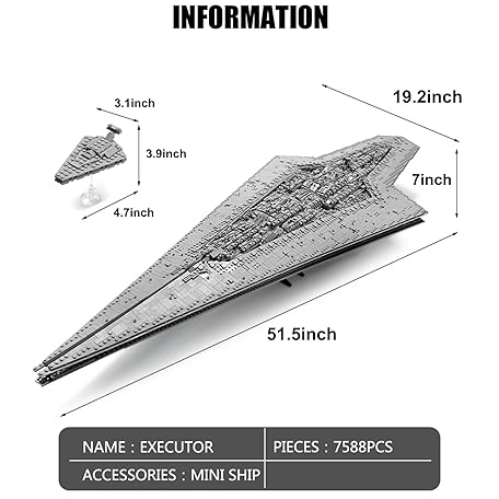 Thông tin sản phẩm Mould King 13134 Super Star Destroyer Model Ship, Executor Star Dreadnought Building Toy, 7588+Pcs Collectible Model Gifts, Build and Play Awesome Building Kit for 8-12 Boys