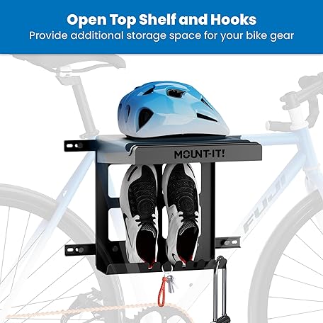 Sản phẩm Mount-It! Bike Wall Mount Rack with Shelf and Hooks, Horizontal Indoor Bike Rack Garage Home, Space Saving Wall Mounted Hanger for a Single Road, Mountain or Other Bicycle with Extra Storage, Black đang được bán với giá ưu đãi là $87.1891 tại nước Mỹ.