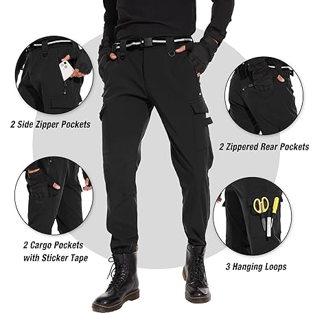• MOURCE Mens Fleece Lined Hiking Pants Waterproof - Insulated Outdoor Snow Ski Pants for Men