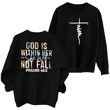 MOUSYA Christian Sweatshirt Women Religion Faith Graphic Tees Bible Pullover Tops