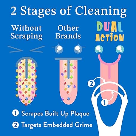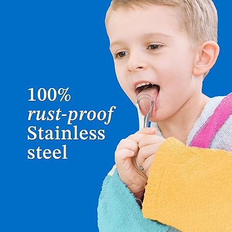 Mouthology Tongue Scraper for Kids (2 Pack), Stainless Steel Tongue Cleaner (Reduce Bad Breath), Metal Tongue Scrubber for Children, Improve Oral Health