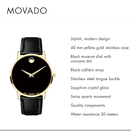 Thông tin sản phẩm Movado Museum Classic Men's Watch - Swiss Quartz Movement, Calfskin Strap - 3 ATM Water Resistance - Classic, Luxury Fashion Timepiece for Him - 40mm