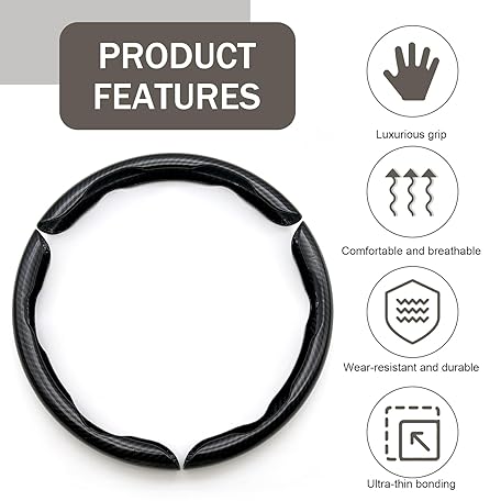 Thông tin sản phẩm MOXRUQ 3 PCS Car Steering Wheel Cover, Laser Carbon Fiber Ultra-Thin Steering Wheel Cover, Anti-Skid Segmented Car Steering Wheel Protector, Universal for Most Cars (Black)