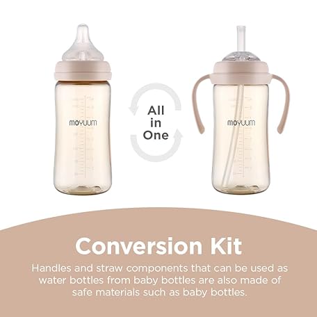Sản phẩm MOYUUM All in One Baby Bottle Set with Straw Top, Handle, Weighted Straw, Cleaning Brush - Easy to Clean, Toddler-Friendly (Beige) đang được bán với giá ưu đãi là $9.7991 tại nước Mỹ.