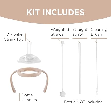 Thông tin sản phẩm MOYUUM All in One Baby Bottle Set with Straw Top, Handle, Weighted Straw, Cleaning Brush - Easy to Clean, Toddler-Friendly (Beige)