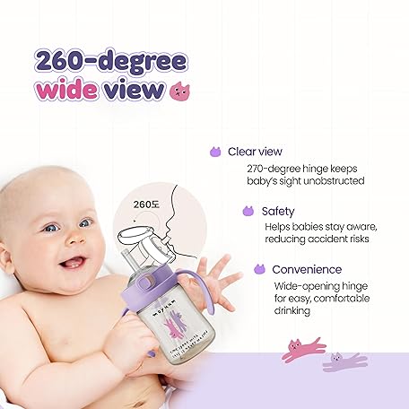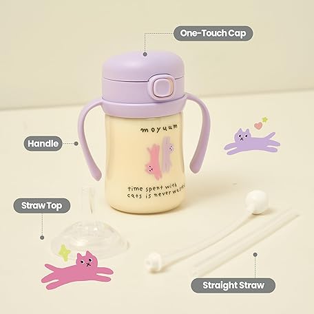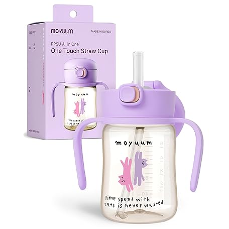 MOYUUM Leak Proof Sippy Cup with Handle | Made in Korea, 100% BPA Free PPSU, Magic No Spill Straw Cup with Attached Flip Top Lid, Easy to Hold for Babies and Toddlers, 6oz Purple