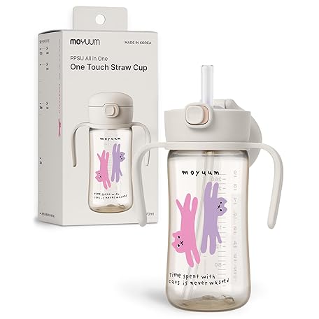 MOYUUM Leak Proof Sippy Cup with Handle | Made in Korea, 100% BPA Free PPSU, Magic No Spill Straw Cup with Attached Flip Top Lid, Easy to Hold for Babies and Toddlers, 9oz Gray