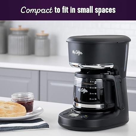 Sản phẩm Mr. Coffee Programmable Coffee Maker 5 Cups with Auto Pause Glass Carafe Compact Design Black đang được bán với giá ưu đãi là $54.4891 tại nước Mỹ.