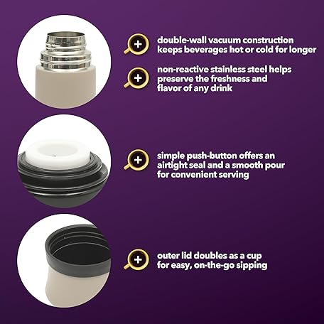 Thông tin sản phẩm Mr. Coffee Silverleaf 23 oz Stainless Steel Thermal Bottle – Double Wall Vacuum Insulated Travel Mug with Leak-Proof Lid, Taupe – Hot & Cold Beverage Flask for Work, Commute, or Camping