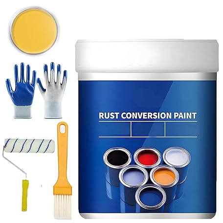 Mr Material 1 Rust Paint, 4-in-1 Rust Conversion Paint for Metal, 10.5/17.6/35.2 OZ Water-Based MetalRust Remover, Weatherproof Long-Lasting Rust Prevention & Protection (Yellow-17.6oz/1.1lb)