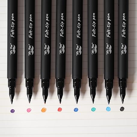 Thông tin sản phẩm Mr. Pen- Felt Tip Pens, Assorted Colors, 8 Pack, 0.7mm, Fine Felt Tip Pens Fine Point, Journaling, Note Taking, Fast Dry, Writing