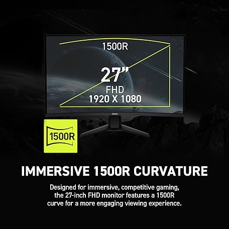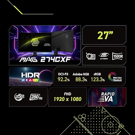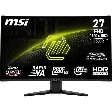 MSI MAG 274CXF 27-inch 1920 x 1080 (FHD) Curved Monitor, 280Hz, HDMI, DisplayPort, VGA Port, VESA Mountable, Tilt, Speaker, Slim Bezel, 0.5ms, Black
