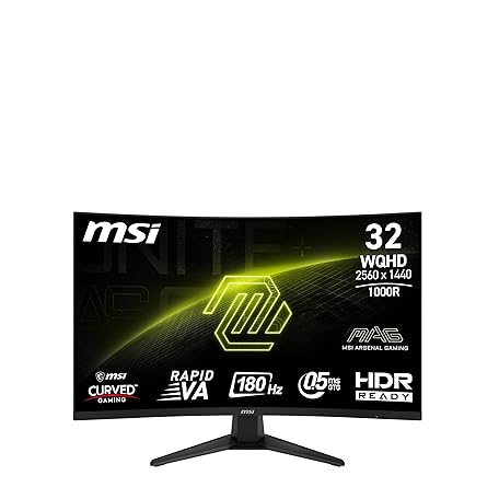 • MSI MAG 325CQF 32-inch 2560 x 1440 (QHD) Gaming Monitor, 180Hz, Adaptive-Sync, HDMI, DisplayPort, VESA Mountable, Tilt, Height Adjustable, Speaker, 0.5ms, Black