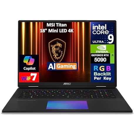 MSI Titan AI Gaming Laptop 18" 120Hz Mini LED 4K Display (Intel Ultra 9-285HX, GeForce RTX 5090 24GB, 64GB DDR5, 8TB PCIe SSD, Win 11 Pro) w/MS 365 Personal, DKZ USB Port Expander