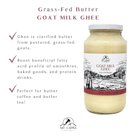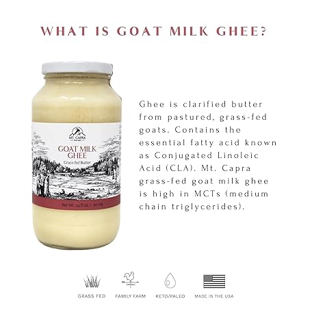 Thông tin sản phẩm Mt. Capra Goat Milk Ghee | Grass-Fed Clarified Butter High in MCT Oil Perfect for Bulletproof Coffee, Keto, Paleo, and Whole 30 Diets | Pasture Raised and Unsalted | 142 Servings - 24 fl oz