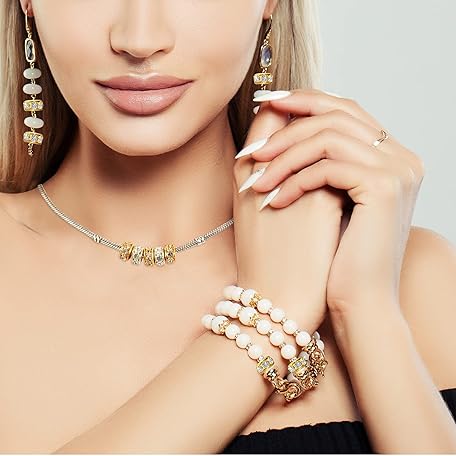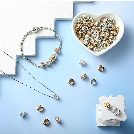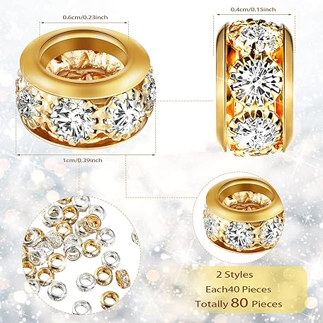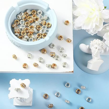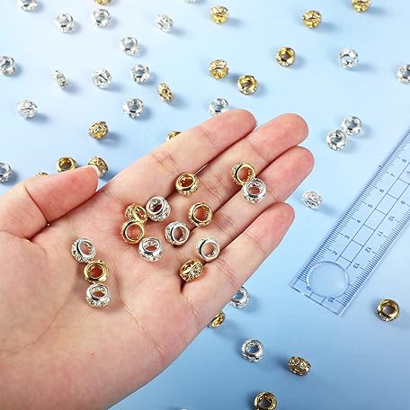 MTLEE 80 Pieces Large Hole Rhinestone Beads 10 mm Crystal Pave Spacer Beads Rhinestone Pave European Rochell for Jewelry Making Bracelet(KC Gold, Silver)