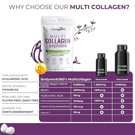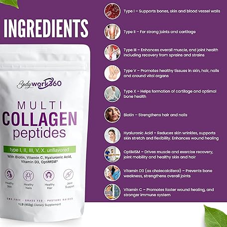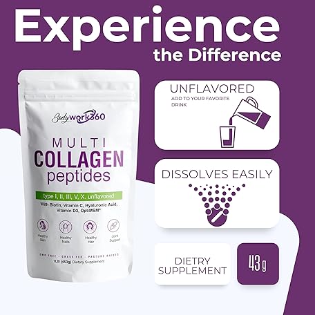 Multi Collagen Peptides Powder for Men & Women | Type I,II,III,V,X with Hyaluronic Acid, Biotin, Vitamin C, Vitamin D3 & OptiMSM - Unflavored
