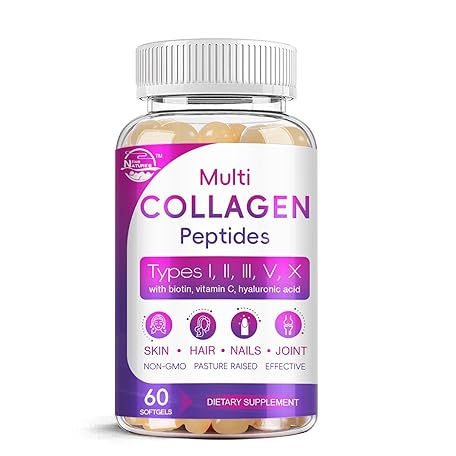 Sản phẩm Multi Collagen Peptides Softgel - Type I, II, III, V, X - Hydrolyzed Collagen Peptides with Biotin, Vitamin C, Hyaluronic Acid, Supports Skin Hair Nail, Grass-Fed, Non-GMO, 60 Softgel, 1 Pack đang được bán với giá ưu đãi là $20.6991 tại nước Mỹ.