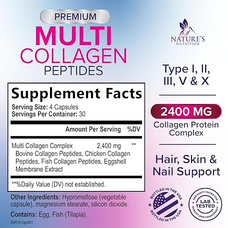 Thông tin sản phẩm Multi Collagen Supplement 2400 mg - Types I, II, III, V & X Multi Collagen Peptides Pills for Women & Men, Hydrolyzed Collagen Supplements, Hair, Skin, Nail, & Joint Support Supplement - 120 Capsules