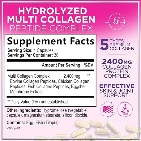Thông tin sản phẩm Multi Collagen Supplement 2400 mg - Types I, II, III, V & X Multi Collagen Peptides Pills for Women & Men, Hydrolyzed Collagen Supplements, Hair, Skin, Nail, & Joint Support Supplement, 120 Capsules
