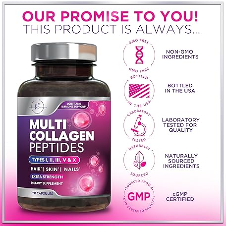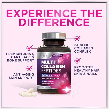 Sản phẩm Multi Collagen Supplement 2400 mg - Types I, II, III, V & X Multi Collagen Peptides Pills for Women & Men, Hydrolyzed Collagen Supplements, Hair, Skin, Nail, & Joint Support Supplement, 120 Capsules đang được bán với giá ưu đãi là $14.8458 tại nước Mỹ.