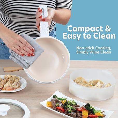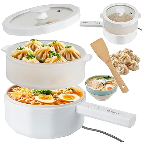 3-In-1 Electric Hot Pot w Dumpling Steamer & Rice Cooker - Multi-Function Non-Stick Cooker (1.5L) - Rapid Noodles Fried Rice Ramen Vegetables Soup w 2 Power Settings - Christmas or Dorm Essential Gift