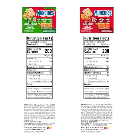 • Munchies Baked Sandwich Crackers Variety Pack, Doritos Nacho Cheese and Doritos Jalapeno Cheddar, 1.38 Oz sleeves (Pack of 64)