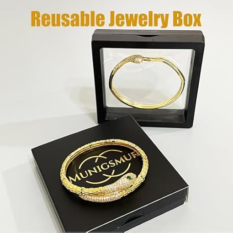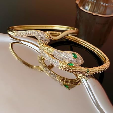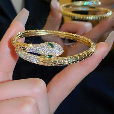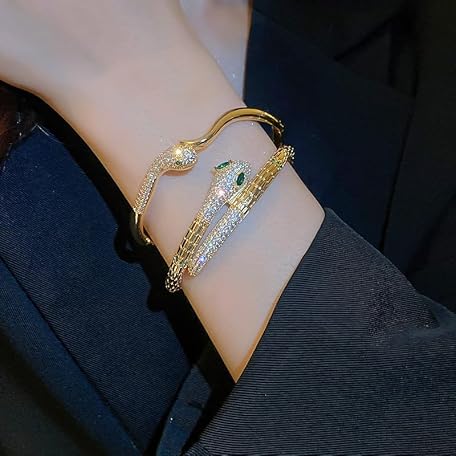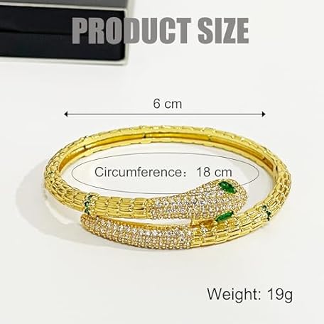 • MUNIGSMUR 18K Gold Plated Snake Bracelet with Sparkly Cubic Zirconia Green-eyed Snake Bracelets Open Cuff Bangle Bracelets for Women