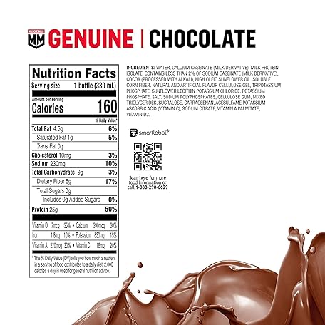 Thông tin sản phẩm Muscle Milk Genuine Protein Shake, Chocolate, 25g Protein, 11.16 Fl Oz (Pack of 12), Packaging May Vary