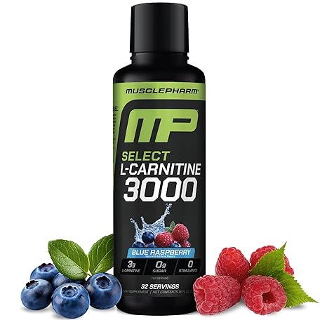 Muscle Pharm L-Carnitine 3000, The Ultimate Liquid L Carnitine Supplement for High-Performance, Supports Metabolism, Hydration & Energy, Zero Sugar, Low Calories, Blue Raspberry Flavor, 32 Servings