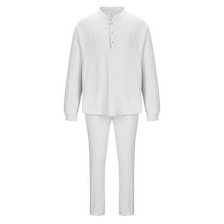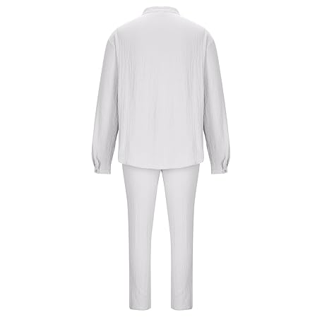 Muscularfit Cotton Linen Sets for Men 2 Piece Button Down Shirt Long Sleeve Drawstring Waist Pants Fall Fashion Outfits 2023