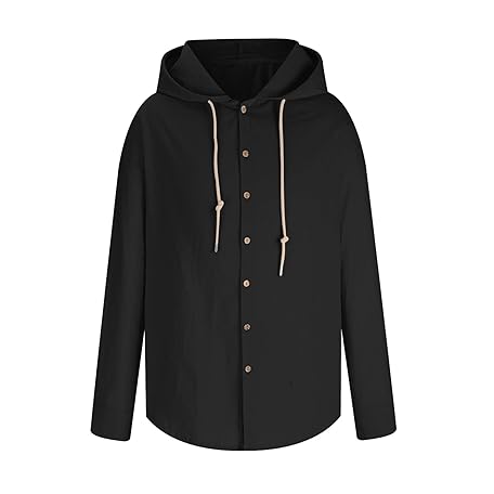 • Muscularfit Men's Fashion Hoodies & Sweatshirts Drawstring Casual Long Sleeve Cotton Linen Shirts Fashion Button Down Hoodies