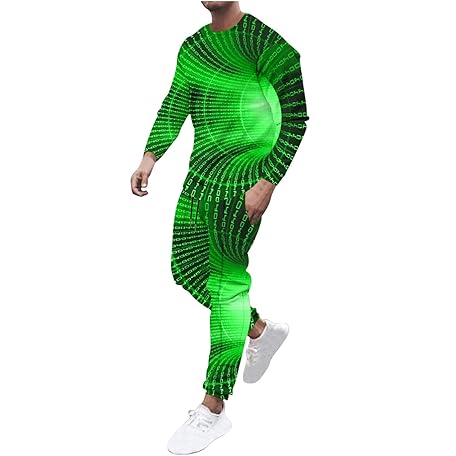 Muscularfit Sweat Suits for Men Set 2 Piece Fashion 3D Print Sport Tracksuit Set Long Sleeve Crewneck Sweatshirt and Pant Set