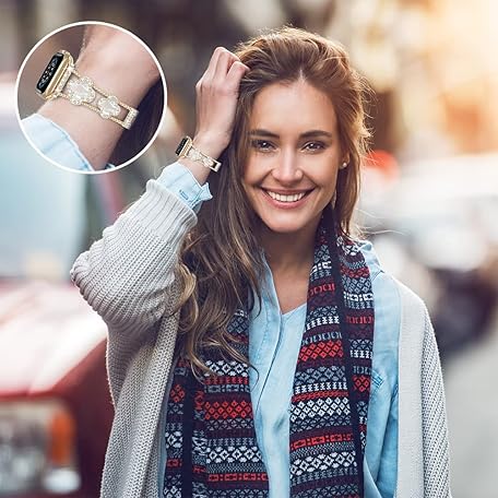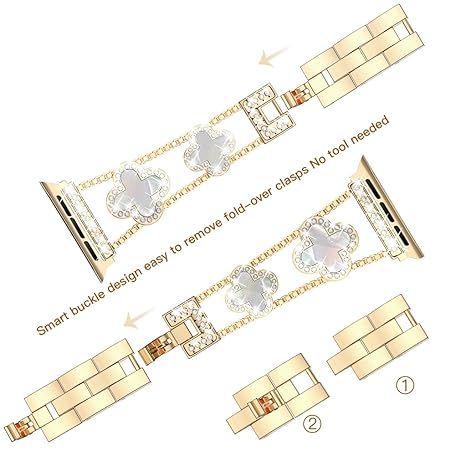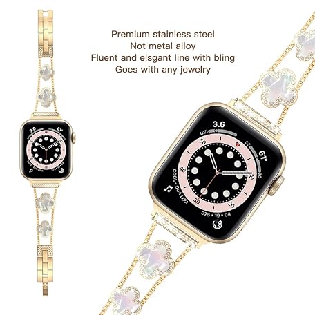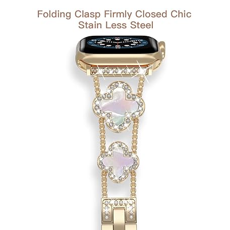 • Musk-MSKR Diamond Metal Bands Add Sparkle to Your Watch For Apple Watch Series 11/10/9/8/7/6/5/4/3/2/SE/Ultra Clover Simple and Stylish Compatible with 38mm40mm41mm42mm44mm45mm 46mm49mm Women's Wear