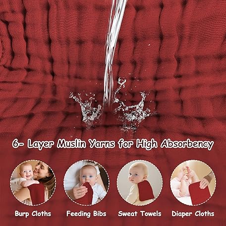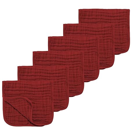 • Muslin Solid Burp Cloths 100% Cotton Large 18''x10'' Extra Soft and Absorbent Multifunctional 6 Pack Baby Burping Cloth for Unisex Boys Girls (Red)