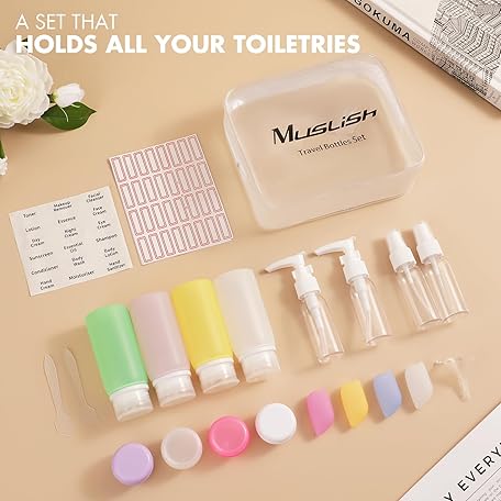 Thông tin sản phẩm Muslish 21 Pack Leak Proof Silicone Travel Bottles Set, TSA Approved Containers for Toiletries, Travel Size Accessories and Shampoo Conditioner Bottles with Toiletry Bag (BPA Free)