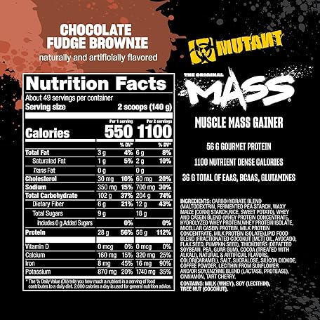 Sản phẩm Mutant Mass Weight Gainer Protein Powder – Build Muscle Size and Strength with 1100 Calories (Chocolate Fudge Brownie, 15 Pound (Pack of 1)) đang được bán với giá ưu đãi là $96.8792 tại nước Mỹ.