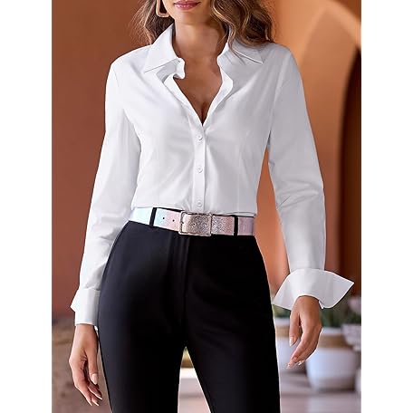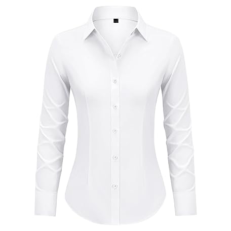Mutitop Button Down Shirts for Women Fitted Dress Shirt Wrinkle Free Collared Blouse Work Business Office Attire Fall Outfits
