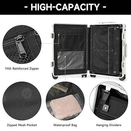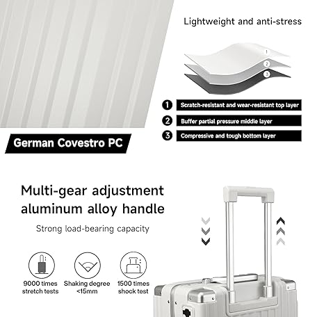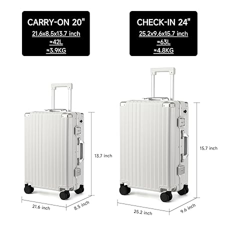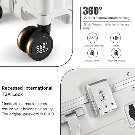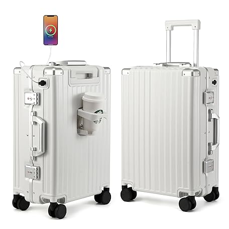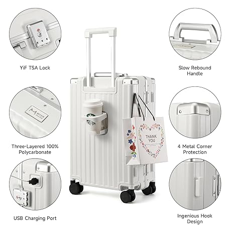 Thông tin sản phẩm MYER Hard Shell Carry On Luggage 22x14x9 Airline Approved,20 Inch Aluminum Luggage with 100% 3-Layer PC,Carry On Suitcases with Wheels,Cup Holder and USB Port (Milky White, 20 inch)