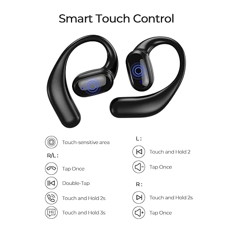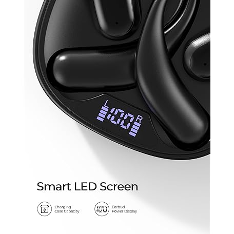 Thông tin sản phẩm Mythsound Open Ear Headphones, Bluetooth 5.3 Wireless Earbuds with Earhooks, 75 Hours Playtime, Fast Charging, Sweat Resistant, Digital Display Charging Case for Music, Game, Sport(Black)