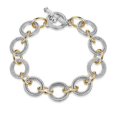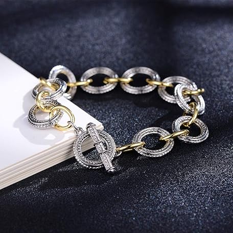 Sản phẩm Mytys Chunky Chain Link Bracelet Two-Tone Mixed Metal Textured Toggle Clasp Statement Bangle Bracelet Jewelry for Women Fashion đang được bán với giá ưu đãi là $20.6555 tại nước Mỹ.