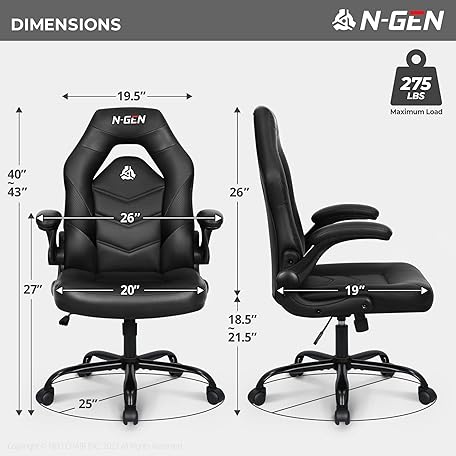 N-GEN Video Gaming Chair Ergonomic Computer Desk Office Chair with Lumbar Support Adjustable Height Swivel Wheels Flip-Up Arms PU Leather Home and Office (Black)